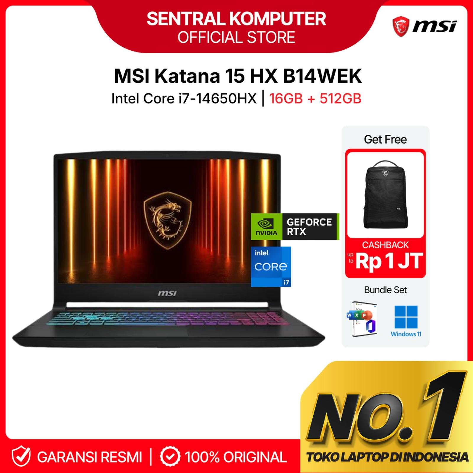 (NEW) MSI KATANA 15 HX RTX5070 I7 14650HX 16GB 512GB W11+OHS 15.6 QHD 144HZ